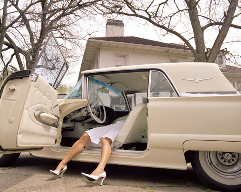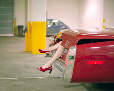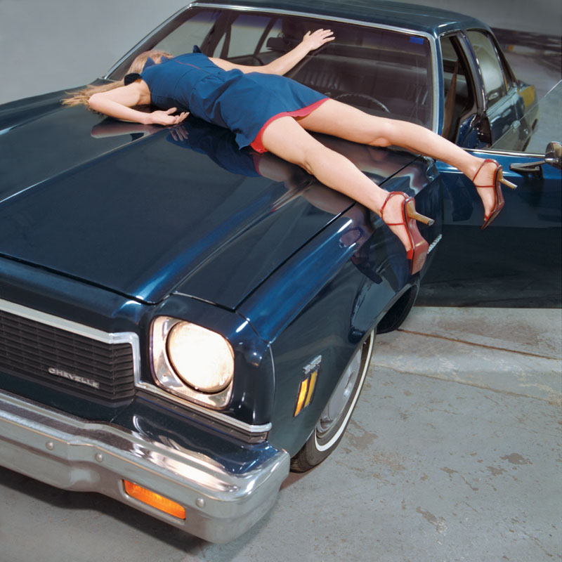Nicola Kuperas combines fashion, classic cars, supine models, and her hometown of Detroit to compose these surprisingly elegant, atmospheric, Hitchcock-like images. Rendolent of film noir crime scene photos, her works all seem to hint at violence just past, inspiring us to fill in the rest of the story. I especially love that these images don’t include the models’ faces. That simple device seems to increase the images’ mystery and intrigue. FeatureShoot.com put it best;