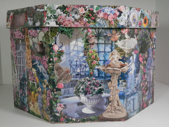 And here’s an even busier hat box to keep your crazy hat dust-free. This reminds me of one of those find-the-object computer games.