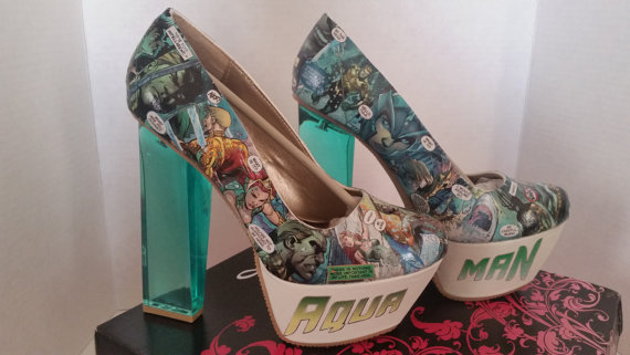 Now I want those Aquaman pumps…! Some of those things I REALLY had to look closely at to figure out WHERE the item was; i.e. that “stiletto purse” and the “hat”. Oy!