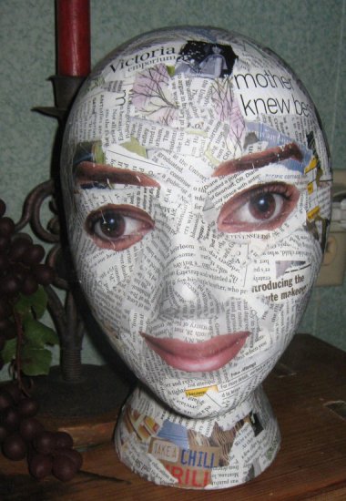 Etsy has quite a selection of creepy decoupaged wig heads for sale. I can’t imagine why.