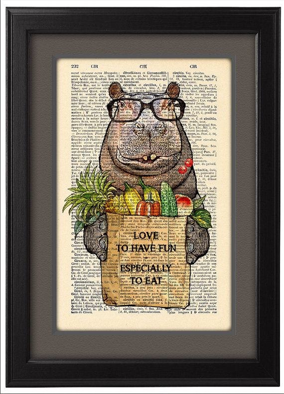 On the list of things NOT to get your girlfriend for Valentine’s Day (or ever), a picture of a hippo that reads “Love to have fun, especially to eat” would be near the top. By NatalPrint.