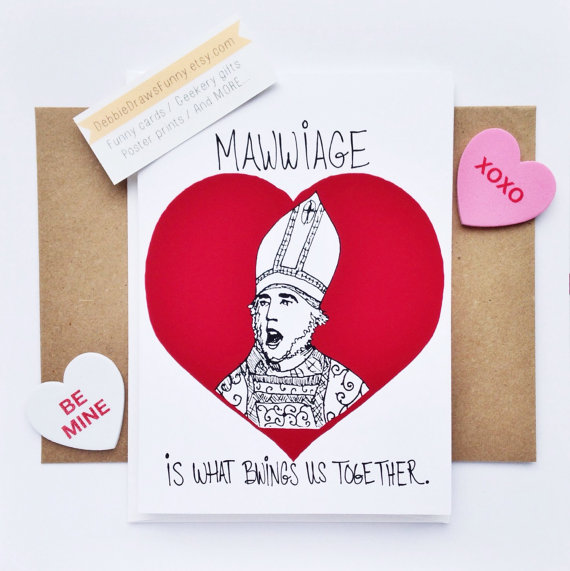 Beloved and I really get into giving each other funny cards. On birthdays and holidays, we each give the other between 3 and 6 cards. This is why I consider myself something of a greeting card expert. Not surprisingly, Etsy sellers’ funny Valentine’s Day selections run the gamut from awesomely funny I-don’t-care-what-shipping-costs cards to so-terrible-I’m-posting-it-on-my-Facebook-wall cards, and I’m here to celebrate the lot!