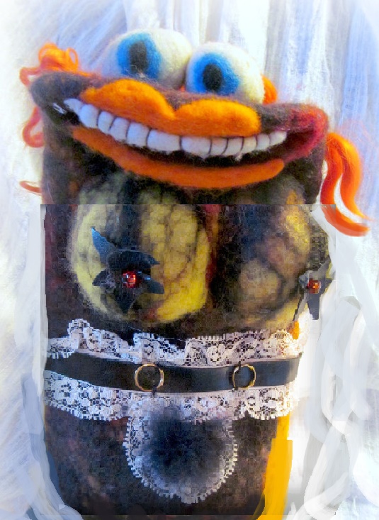 This is Carol The Adult Lady Puppet. According to the description, Carol is wearing something she bought at the puppet lingerie store. She "loves to play around before bed." Good grief. By FeltFabulousPuppets