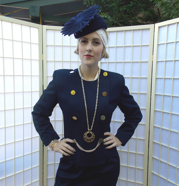 Spring has sprung, temperatures are warming (sort of), the birds are singing, the ice has mostly disappeared, and tiny hints of green are making themselves known among the dead things. This all puts me in mind of . . . work clothes. It’s time to stow away the sweaters and heavy suits and coats, and look for a few key items to update my spring business wardrobe. Enter Etsy. You’d be surprised at the very respectable work wear I have managed to score there over the years, but, of course, being Etsy, there’s a fair share of WTF wear as well.