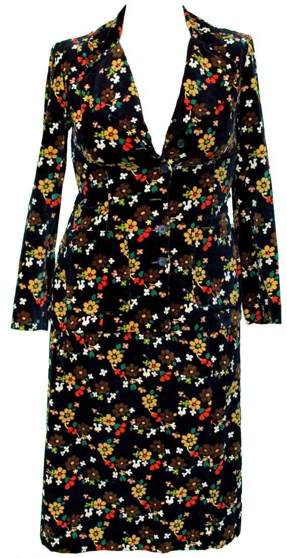 In the sixties, women in the workplace were walked all over by their male colleagues. I assume whoever wore this was instead sat upon. Velvet suit presumably made of old sofa slipcovers.