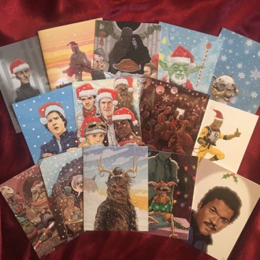 Superb collection! My 8 year old is going to want the Elvis card and my 6 year old is going to want the Elf pugs. My husband, however, might just buy the Star Wars cards because he is such a massive SW nut that I fear he might need therapy if the new movie does not meet his expectations.