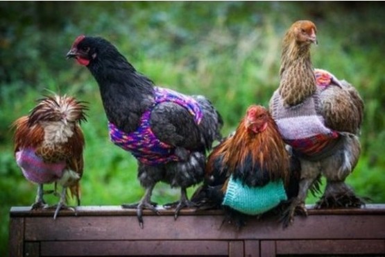 What a wonderfully eccentric but thoughtful thing to do and I love that the act benefits the chickens and another charity too. It reminds me of that group a few years ago who made the jumpers for penguins who had, I think, been caught up in an oil spill.