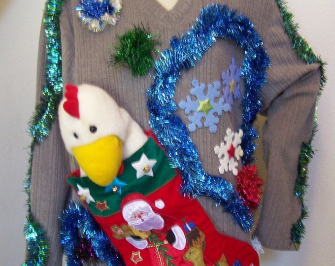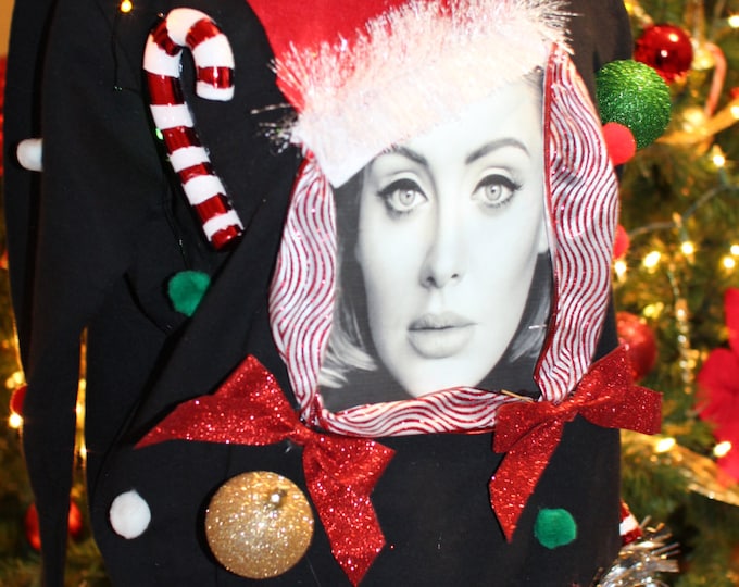 Like all Etsy searches, this one pulled up some real prize winners. The ugly Christmas sweater motif can also be found on everything from hats to shoes to purses to ice cream cozies to whatever these people are selling. The search for “Christmas sweater” also pulled up one item too awful to keep to myself. (Santa is clearly bringing me coal for that one.)