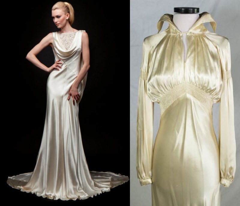 As always, when the eighties do battle with another era, they lose every time. At a little over a thousand dollars, this original 1930s beaded silk gown on the left sold by WhyNaughtShop is a strong contender for best costume! The nicest thing I can say about the situation on the right is that wearing it is probably good exercise. Looks like it weighs a ton!