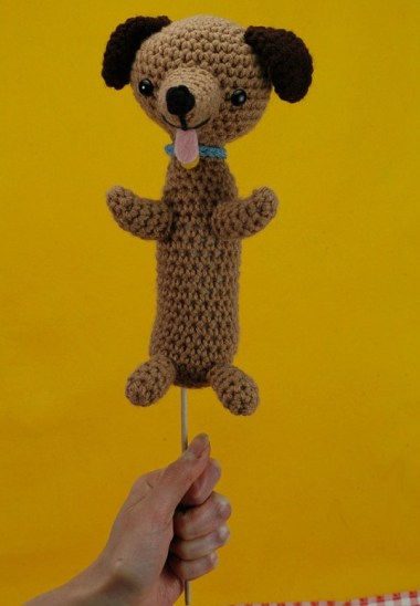 Weiner dog on a stick. Awkward, though the dog doesn’t seem to mind.