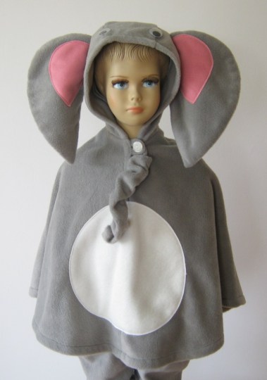 On a positive note…the elephant poncho would be a great choice for someone who has to wear a snowsuit under their Hallowe’en costume because, where they live, it’s winter by October 31.