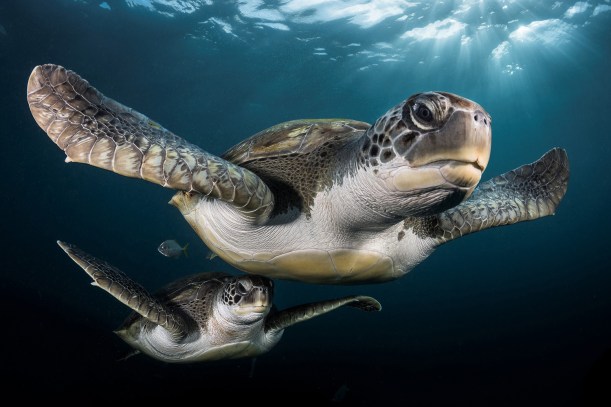 ‘Green Turtles in the rays’ by Greg Lecoeur. Location: Tenerife