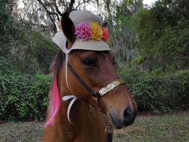 Perhaps the most meta Etsy item ever, a Derby hat… for your horse! By the always-wonderful MyBuddyBling
