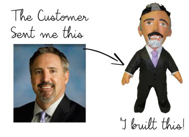 Some of these are just down right creepy! (Dog head in box & cat head on the hand are both a whole lot of NOPE!) Others, though, are quite good (having captured the likeness well, such as the last, felt-guy in red shirt, the girl with the fox, and the “gentleman” dog. Some are cute and novel (the Lego and clay-family portraits) while most of the rest are just weird and novel. I guess the good thing about poorly skilled products is they help us more easily identify what’s good!