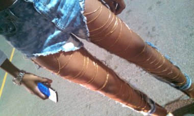 I know of exactly one person who could wear these without looking like a tied-up rump roast, and she’s a size 00.