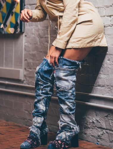 Because you definitely want boots that make it look like you just dropped trou in preparation for some public urination.