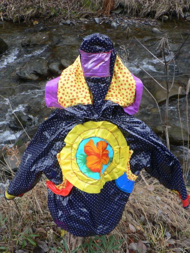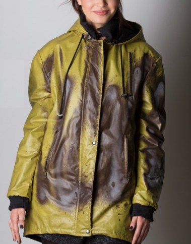 This terrible thing is made from pieces of other raincoats, presumably by Jame Gumb