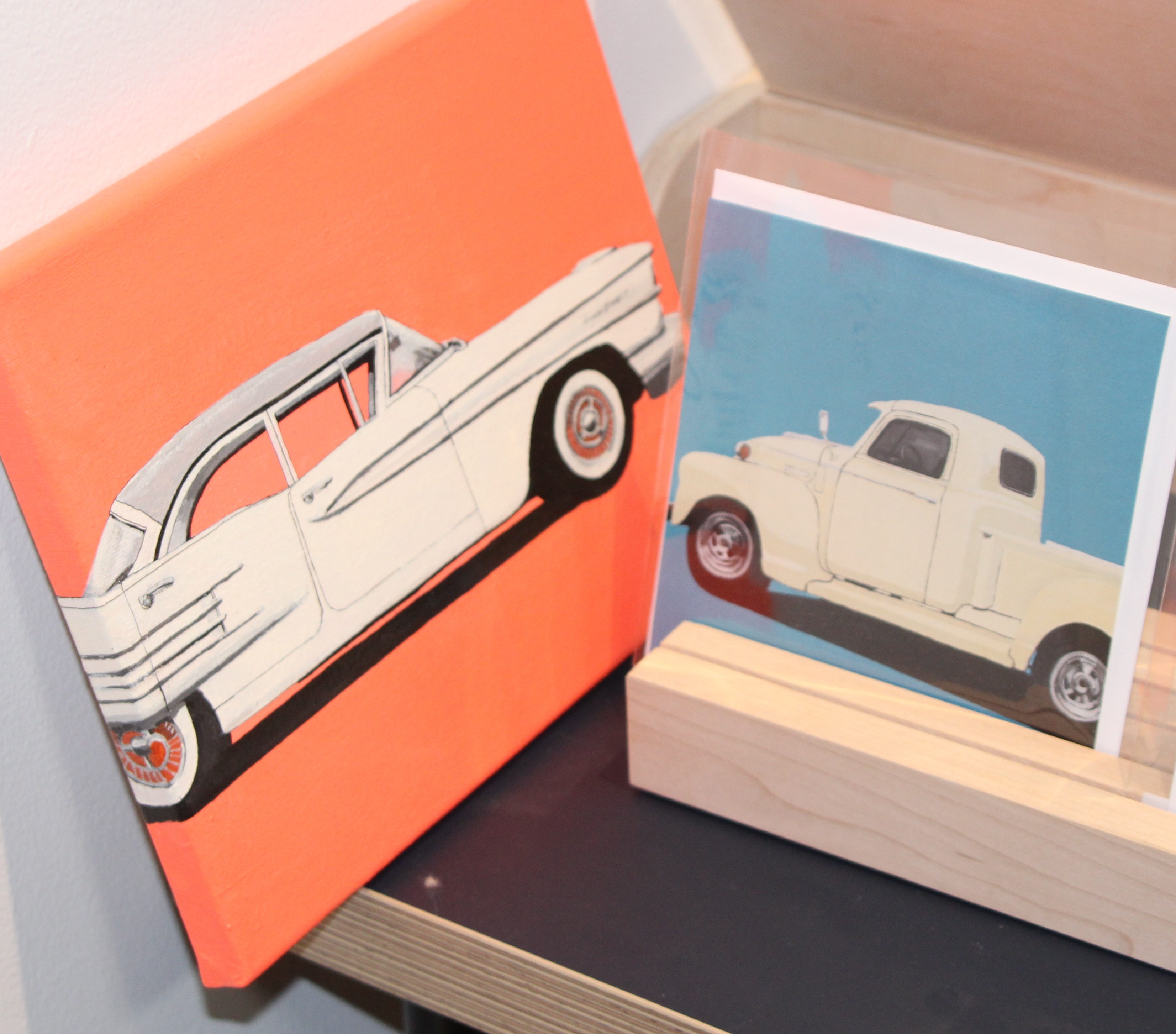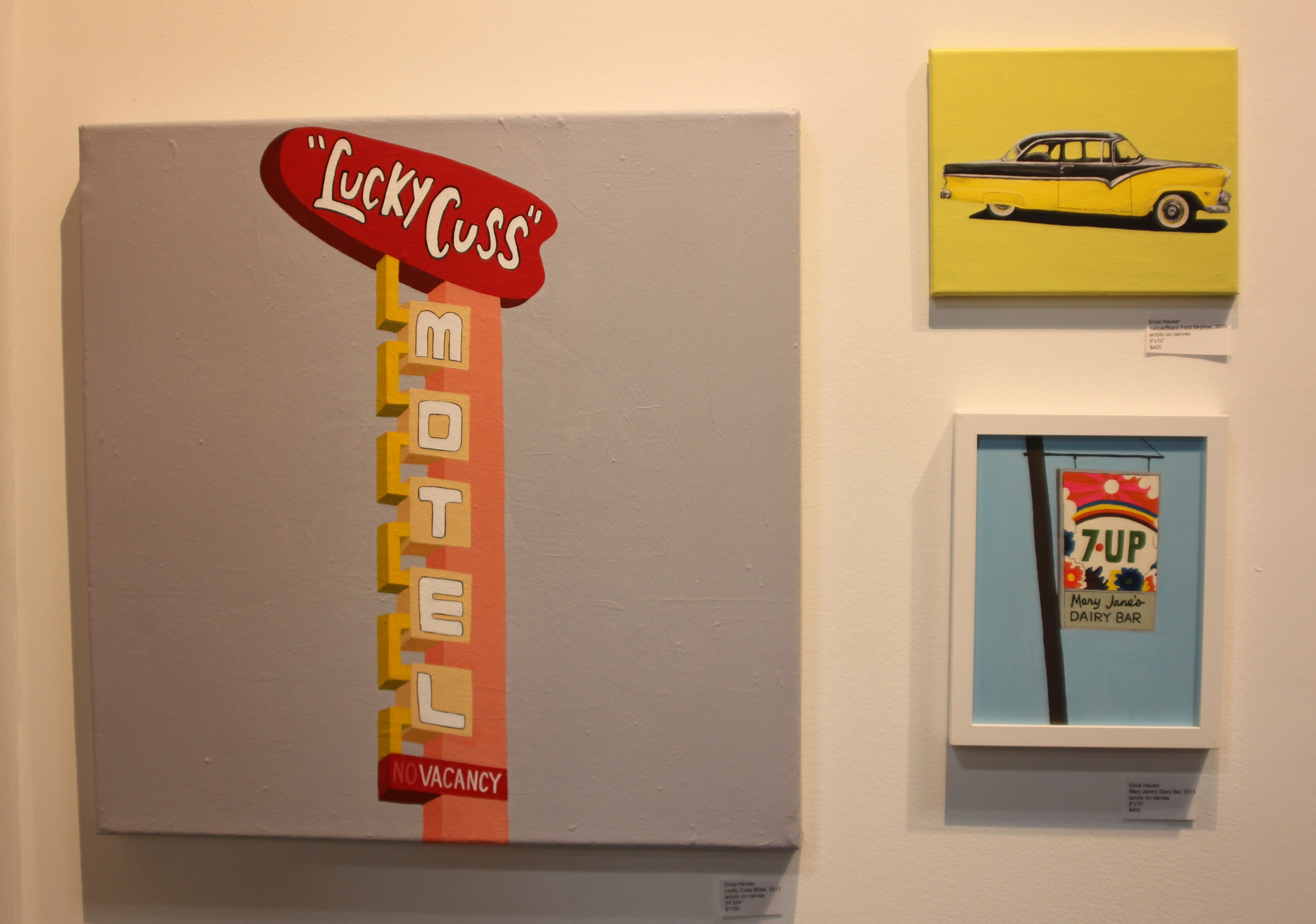 When I came across SVA graduate Erica Hauser’s retro-style paintings at the Other Art Show in November, they washed over me like happy memories. The art felt to me like everything I loved about summer in the sixties – frozen treats and huge cars and family trips, and I want them all!