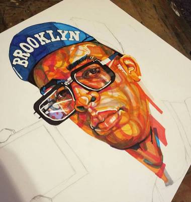 I am totally blown away by the seemingly random colors and shapes in this ink portrait! By DomSellsPortraits