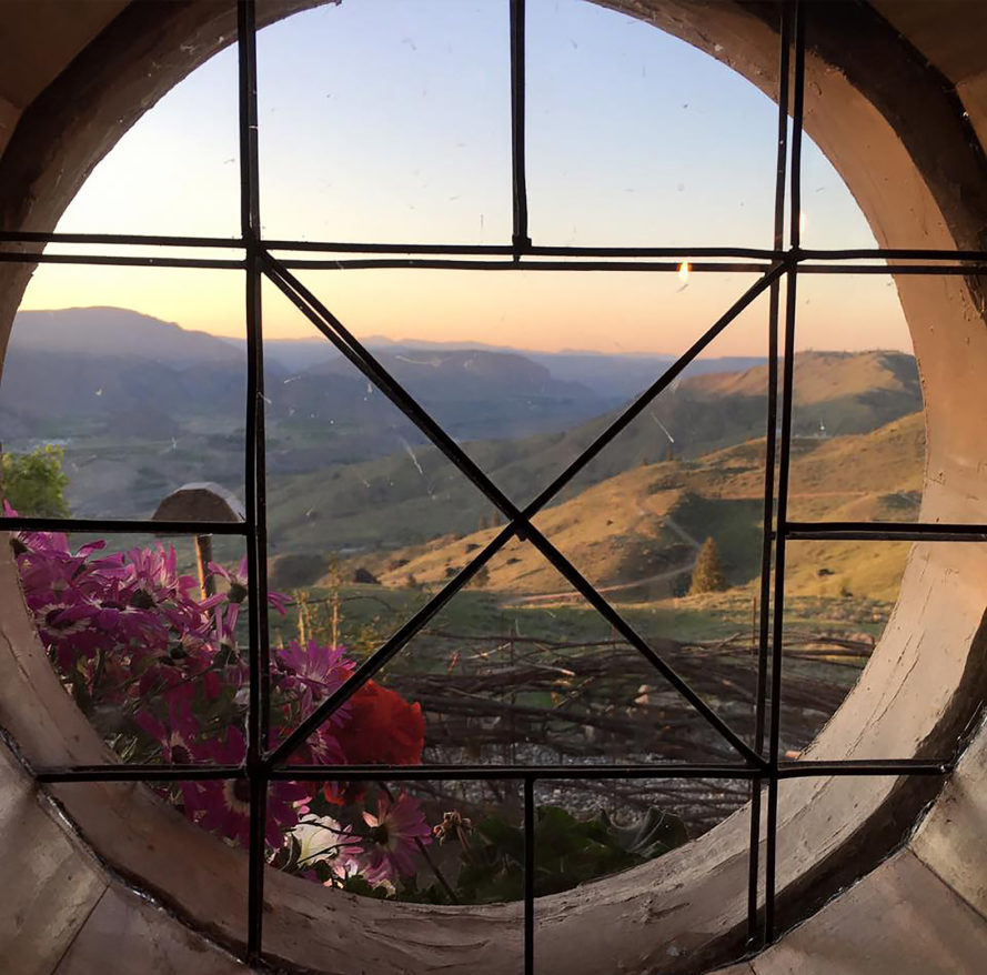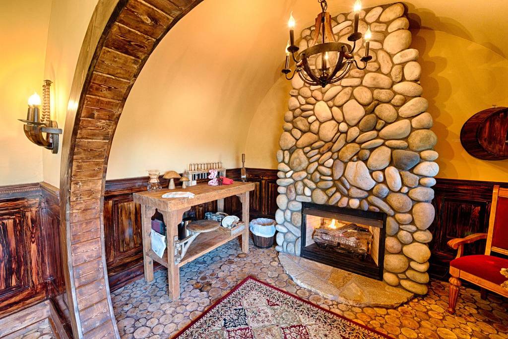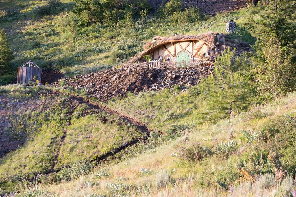 Wolfe found the perfect 5.5 acre plot on the Columbia River Gorge on the side of a mountain near Chelan, Washington. Her tiny house design tucks the majority of the tiny structure into the side of the mountain, keeping it cool in summer and giving it natural protection during the state’s cold winter months. Coming in at just under 288 square feet, the house includes a bedroom, bathroom, kitchen, and living room. Wolfe incorporates some of the rustic Hobbitty details you’d expect to find in the Shire, including round windows, a stone fireplace, and of course, a round door. The sustainable structure also features solar power, propane heating, piped-in water from a nearby water tower, and a greywater system for recycling waste water.