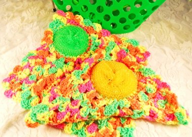 In the category of junk no one needs, these are dish sponges attached to crocheted granny squares. Because Etsy.
