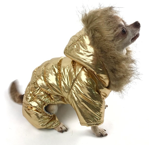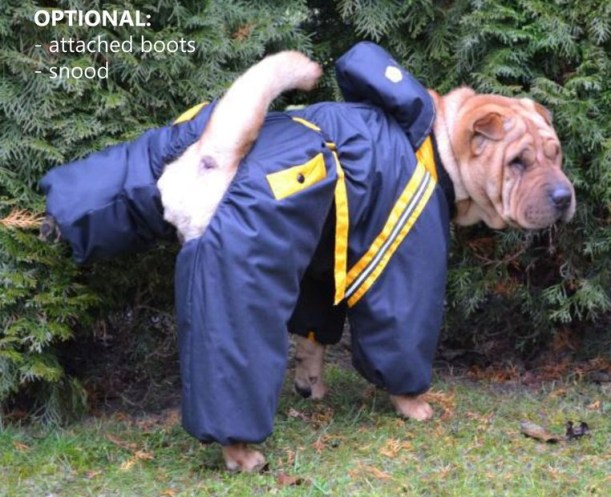 I’m sure the snowsuit is well made, but the pose gives me pause (or should I say ‘paws’..)
