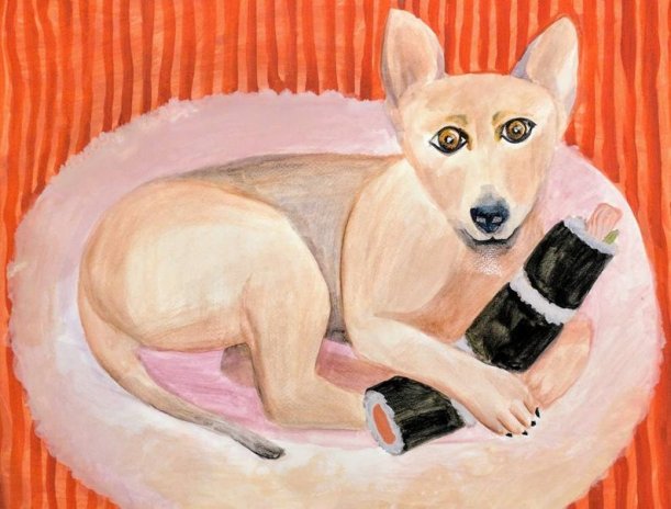 WHY IS THAT PAINTED DOG HUGGING SUSHI???????? (Sorry for yelling, but that disturbed me even more than the rest.)