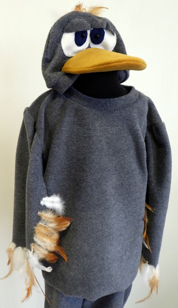 The feathers half-heartedly stuck to the sleeves definitely make the costume.