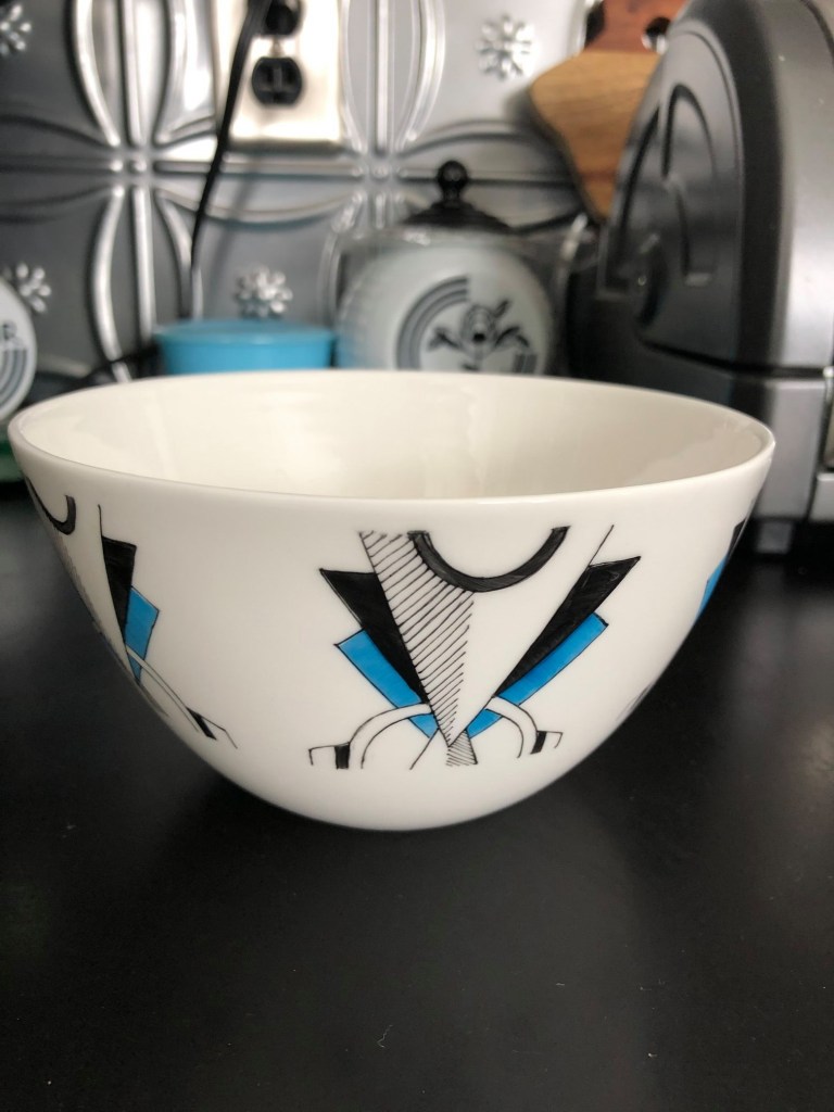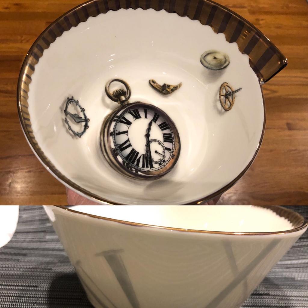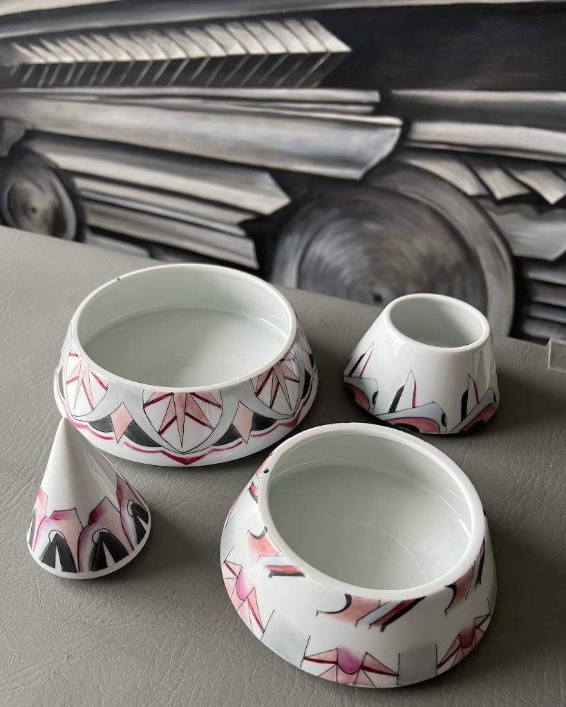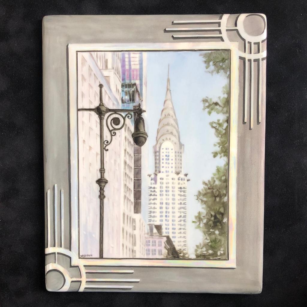 Porcelain painter Mary Powers Gosden came to my attention on one of those delicious Art Deco groups I told you about a couple of days ago. The piece above was posted by the Cazenovia, NY, artist herself, and I can understand why she is so proud of it. Since seeing the photo, I haven’t been able to get the piece out of my head!