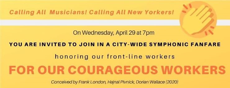 “Music and the arts are part of the fabric of New York City. Let’s all make music—from our roofs and windows—to come together as a great city and to honor the workers risking their health to keep New York safe and functioning.”