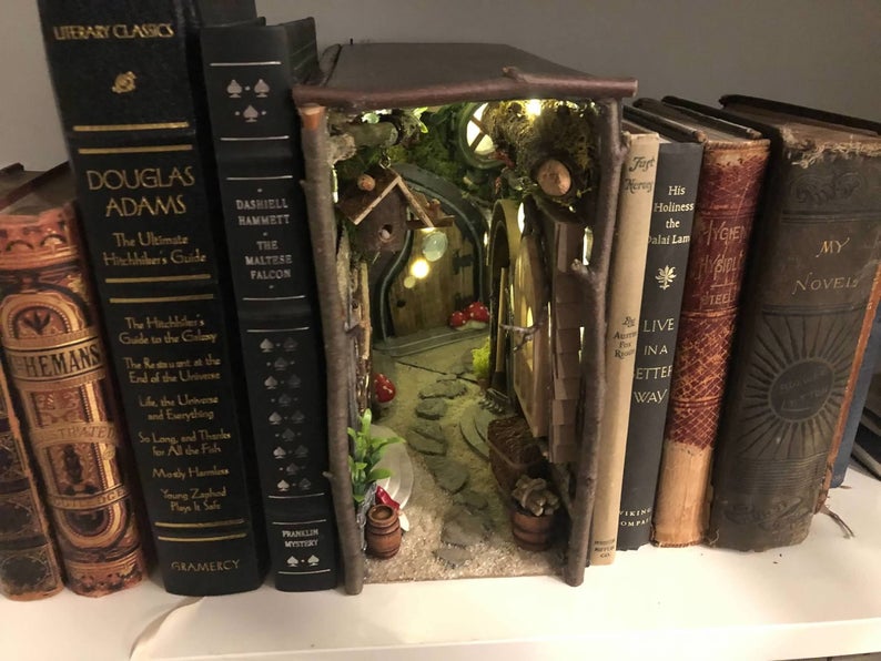 One of my friends introduced me to the concept of book nooks a couple of months ago and I have been thinking about them ever since. These are next level wonderful though. I can see why she sells out as soon as she makes them. I love, love, love the Harry Potter themed one. I have actually contemplated attempting to make my own book nook. It is on my never ending To Do list.
