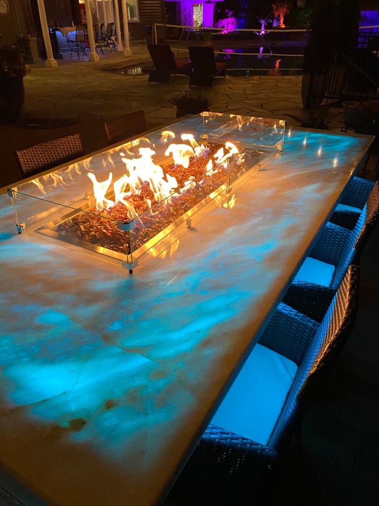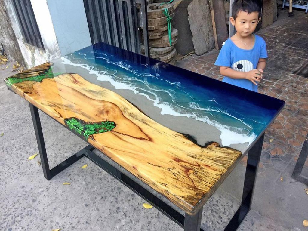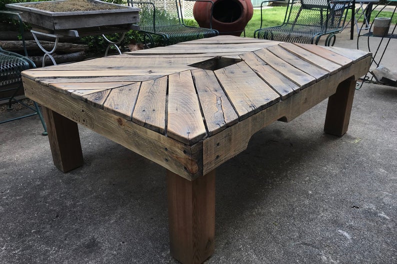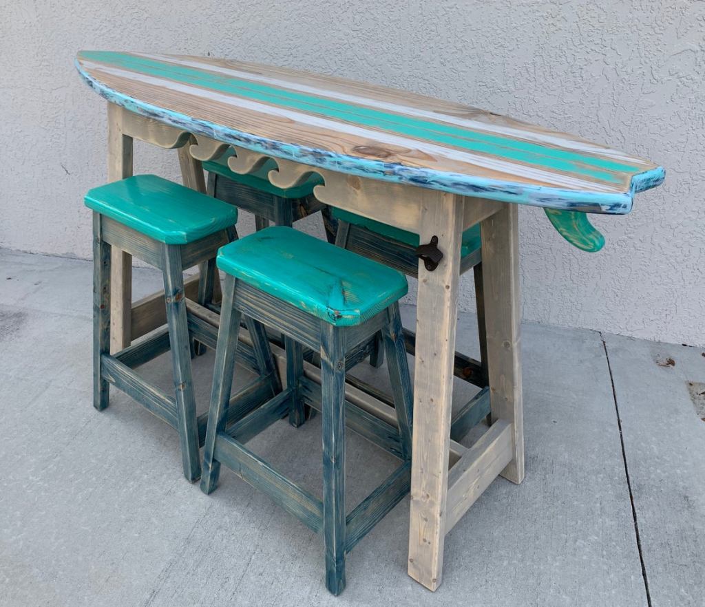 This concrete-top table should stand up to the salt water, and it’s gorgeous! By JacobsenFurnitureWhat a magnificent epoxy-coated wooden mosaic table! By TableLegsUSThis marble-top table with built-in fire pit is a bit too fancy for us, but it sure is interesting! By NGCustomWorkshopThe blend of reclaimed woods in this table is just gorgeous! By CloudNoirThis beauty is made out of reclaimed pallet wood! By EllisGeneralCoEven though it’s wood and has a living edge (both features which I love but which are not ideal for saltwater exposure), this one is my absolute fave! By OMCreationIncWhat a gorgeous polished concrete table! I love it paired with the vintage metal chairs. By KyashCubesIsn’t it incredible the things people can make with resin? By EpoxyResinWoodBeautyThis remarkable, space-saving idea came up in my search, and I’m so inspired! There is one of these in our future for sure. By UpstreamDesignCoWe’d be very popular! By LittleBearsDesignNot quite what we need, but thoroughly adorable! By WebberWoodWerksI do love a good Moroccan mosaic, and the colors in this one make me happy! By ShopLMOnlineAnd the title of greatest (if least practical) outdoor table of all time goes to this fantastic creation! By SwingTables (who else?)