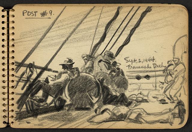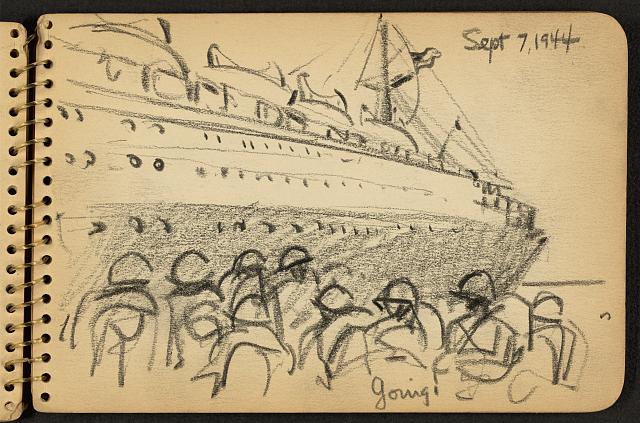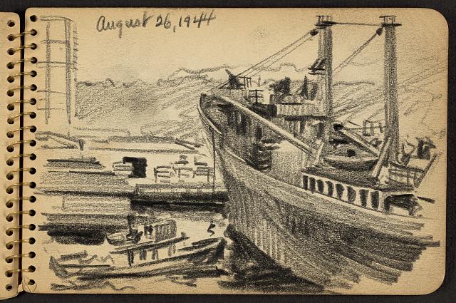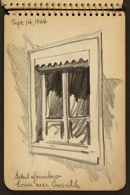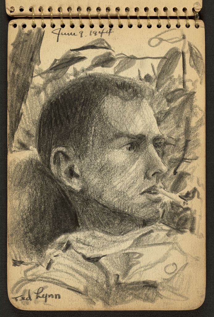 Lundy’s name may sound familiar because he went on to become one of America’s most beloved mid-century architects. But as a young man out of his element and thrown into some very adult situations, all he wanted to do was find a way through it. Drawing had always comforted him, so he kept a sketchbook and a pencil in his pocket at all times, capturing daily life, quick portraits, and still life drawings whenever he could. Miraculously, not only did the young soldier survive that terrible battle; he also managed to hang onto most of his sketchbooks, which he donated to the Library of Congress many years later.
