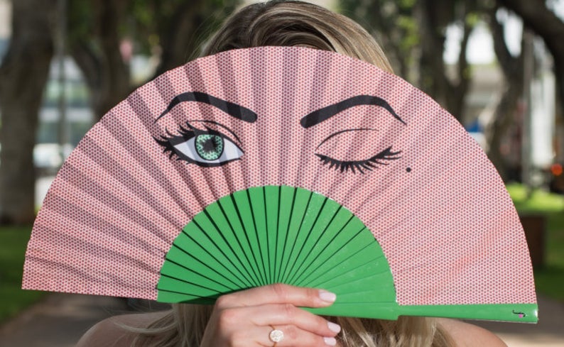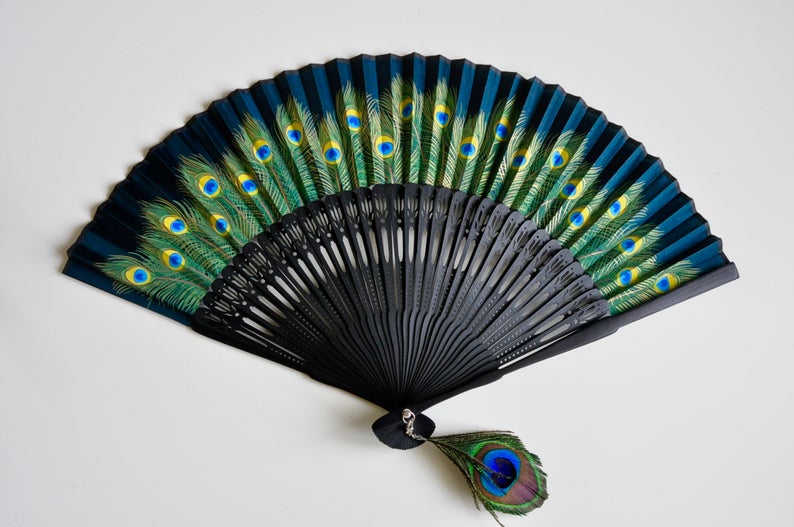 The minute the weather starts getting steamy, I start reaching for my beloved hand fans. I keep one (or two) in every purse, and I used to have one for every occasion and outfit. Unfortunately, I’ve loved some of them right into the ground. So it’s time for some new fan finery! I always feel like they make a special accessory for a fancy event, and being a Woman of a Certain Age, they are plenty practical as well as adding a little pizzazz (have I really reached the age where I can use words like pizzazz non-ironically?) to your personal style. I also love that they’re an inexpensive way to dress up an outfit.