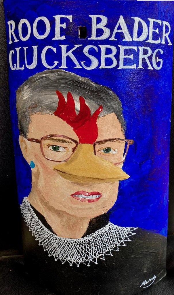 My grief over her loss is still pretty raw so I am not sure I am in a good enough state of mind to deal with RBG depicted as a mutant chicken. I have enjoyed seeing all of the dissent collar and lace jabot tributes to her.