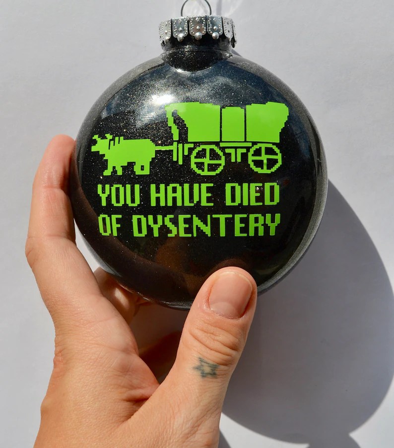 Fellow blogger Alison sent me this festive gem, and it inspired today’s post! Hey, look! It’s Carl… of the Bells!Too farI grew up with a fake Christmas tree (which is why I will never use one again), but this would definitely have helped. By ChristmasTreeHuggerOh, deer…I knew someone who looked just like this! Not the face so much, but definitely the cupcake body.Black rat in Candyland. How festive!For the person who has everything: a “tree fascinator.”Just hilarious! By WoolgatheringJoSage advice…Nothing to see here. Just your traditional Karl Malden angel with pentagram.I was alarmed until I realized this refers to the video game Oregon Trail. Then I was just depressed.I shudder to think how this thing came about…The search term taxidermy ornament turned up some, er, unexpected results.Unacceptable.Who knew angels came in Super Plus!