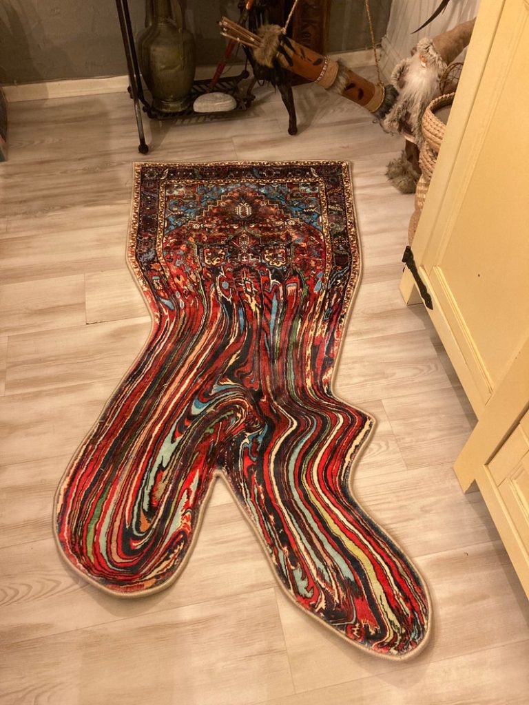 The concept is that it’s a melting rug, but it just looks to me like poorly-drawn pants.