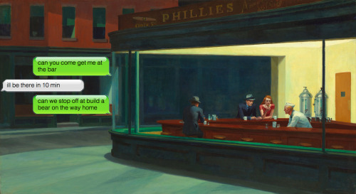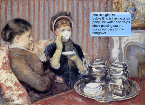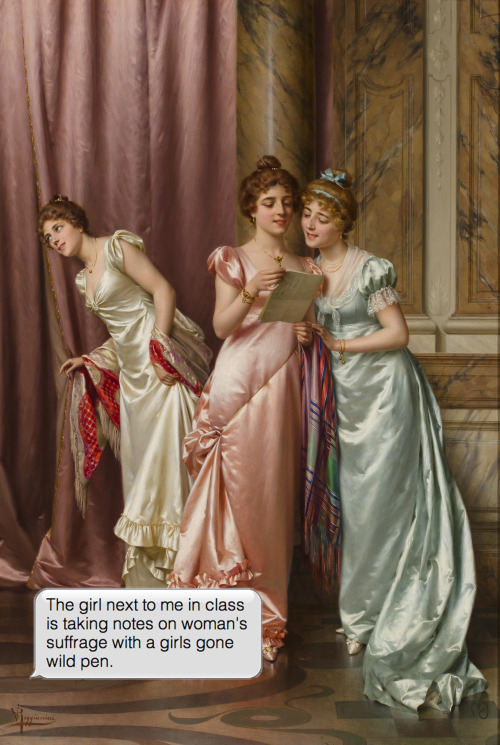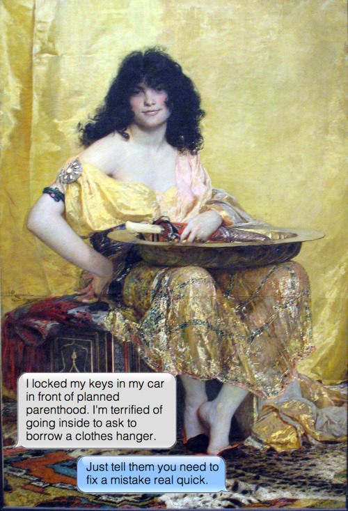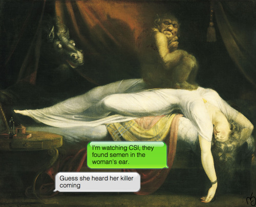 664/24/15: Perhaps the most successful mixed marriage of all time, this is the genius Tumblr known as If Paintings Could Text. The premise is bizarre yet very simple. They pair iconic paintings by the great masters with thought bubbles bearing Texts From Last Night-style captions, and the results are hilarious. There are a few hundred up on the site, so if you like these, go look at the rest!