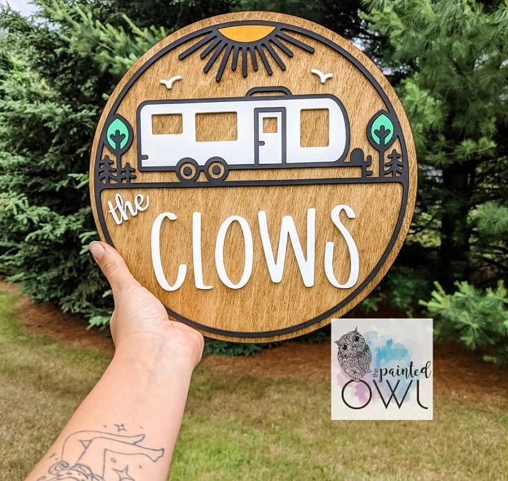 Very cute personalized travel sign, and it would also be a great privacy tool if you instead ordered it to read “The Clowns.” By ThePaintedOwl89