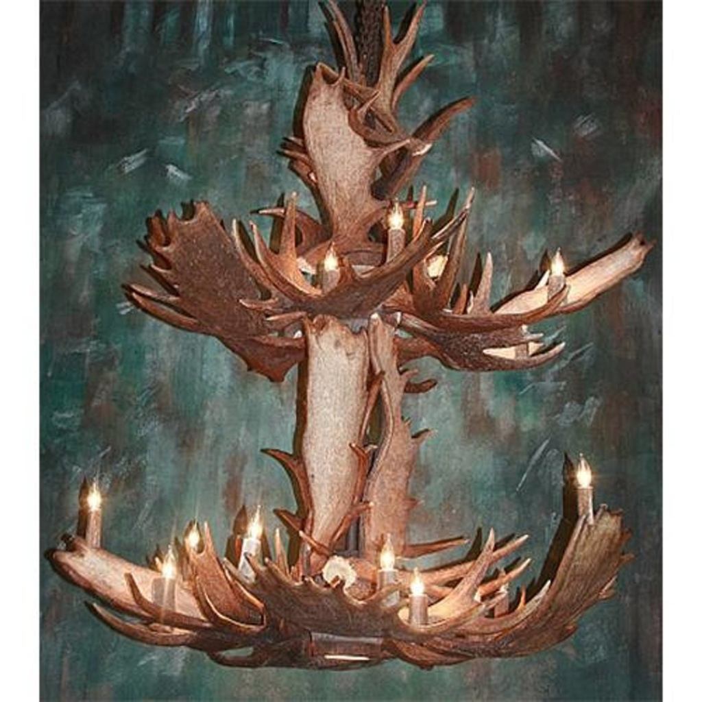 For those among us with more dollars than sense, here’s a hideous 21 Antler Two Tier Moose Chandelier.