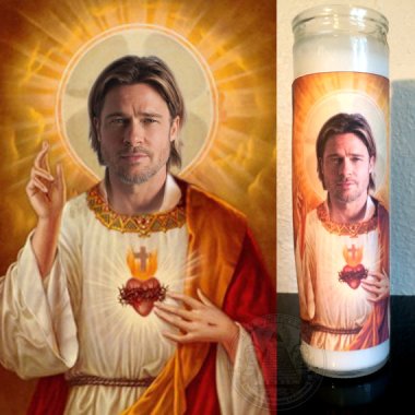 “Saint Brad Pitt Candle” appears on the first page of Etsy gift suggestions.