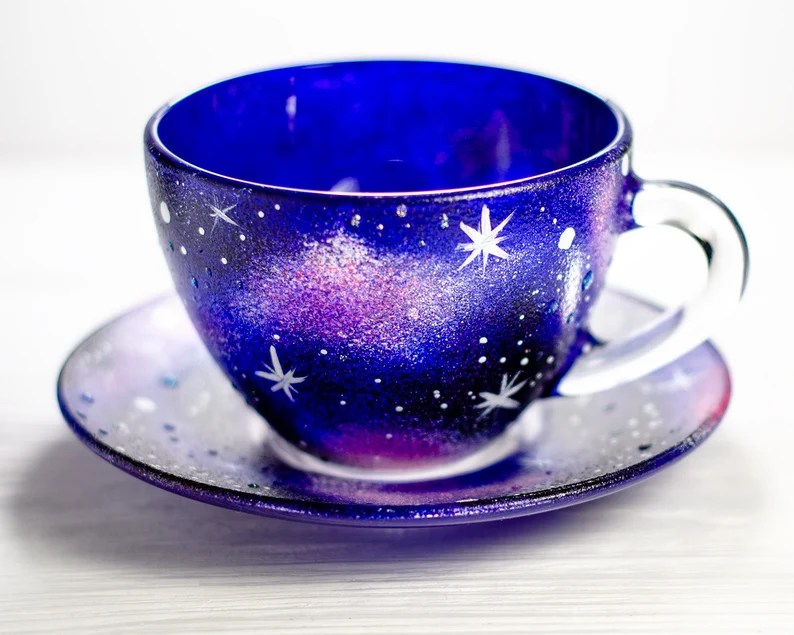 This resin ring featuring the phases of the moon is just lovely! By MoonShadowByBritneyI just love these glow-in-the-dark wall/ceiling decals! By LittleDecoWandtattooI’m really drawn to these lovely bridal hairpins! By IslandTreasuresBtqThese gold foil journal/art embellishments are just fascinating! By StampedAndSealedCoIsn’t this lovely! By RadiantThreadzTruly lovely hand-painted glass cup and saucer. By VitraazeI’m always a fan of kimono, and this one is a beaut! By TwoGirlStudioYou know I’m always a sucker for a mini painting… By KanoelaniArtVery appealing celestial chiffon blouse. By GlobalSwitchWe’ve probably all seen moon lamps, but these planet lamps using real space data images are far superior to the $13 Amazon version! By ColberdIf I had a waist, I’d be all over this cute belt! By MarissaJewelryI’m not sure what they’re for, but I find these “tabletop moons” very appealing! By GalvanizedGoddessWhat an adorable short wedding dress! By FloraAndLaneRemember these? I sure do. Vintage Libbey Celestial glasses sold by VintageUndSparkleI love how dainty this is while still making a statement! By HaylandLivingJewelryI just love this one-of-a-kind galaxy lamp with astronaut. By KeizWorkingVNVery handsome vintage-style CZ earrings. By RivanShantikJewelery