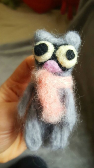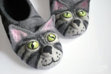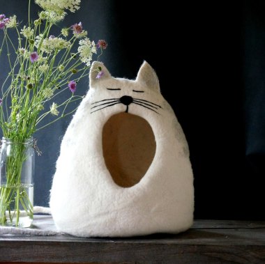 As felted cat caves go, I think this is pretty awesome, but were it occupied, it would definitely look a little strange. By IndreNaujokiene