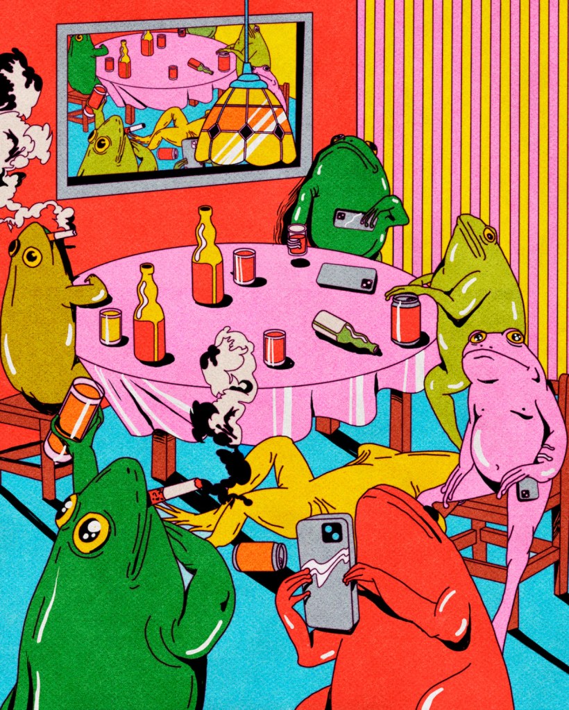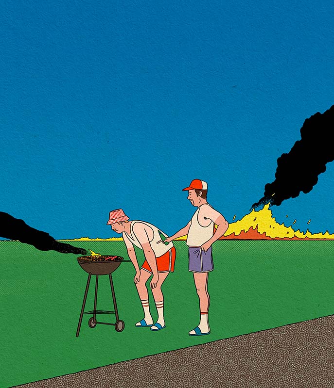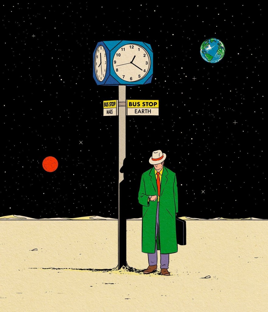 French illustrator Simon Bailly creates truly memorable pop art images. Many of them are retro in feel, but with a sci-fi twist. He’s got a fantastic sense of humor which he manages to communicate without ever saying (or writing) a word. In fact, when he was studying illustration, he became hyper-aware of the importance of storytelling in his work. Bailly’s visual storytelling style has made him an editorial image favorite among some of the most prestigious publications in the world including The New York Times, Los Angeles Times, and The New Yorker. He’s even done advertising work for my favorite label, Hermès!
