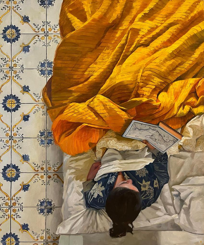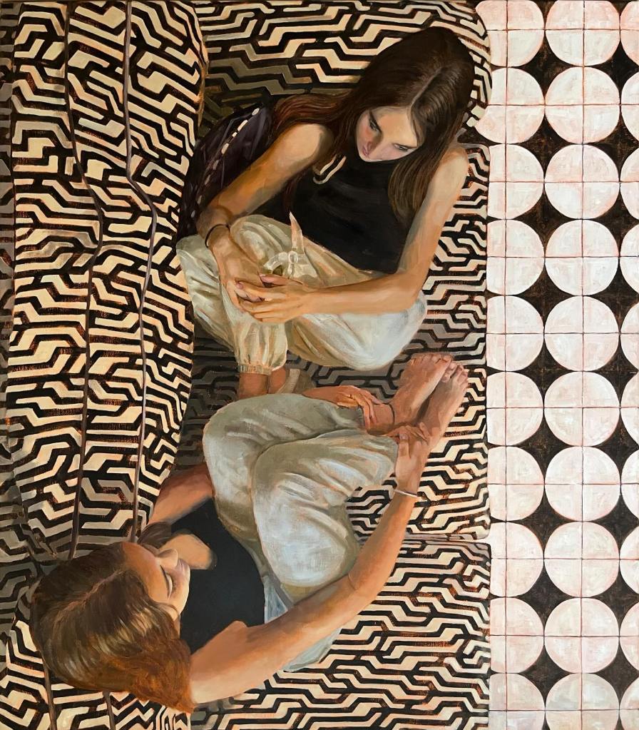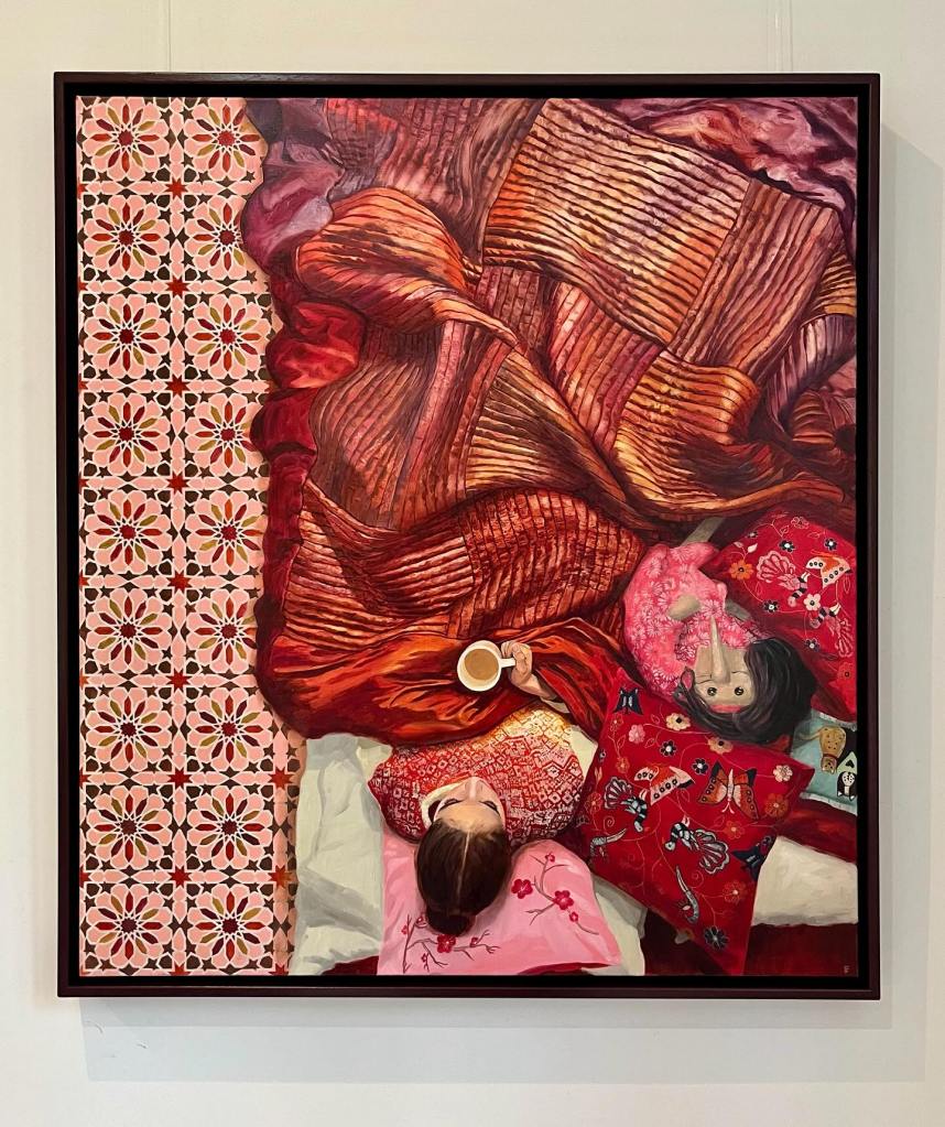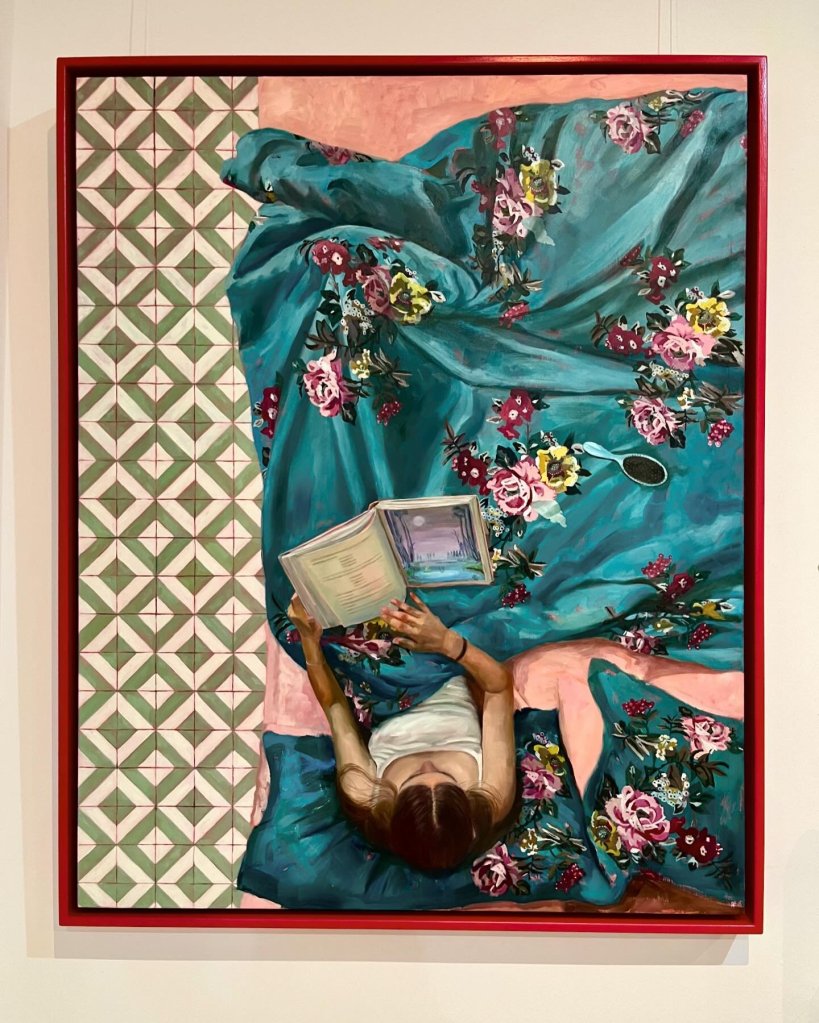 I really like the relaxed vibe to all of the paintings. They are like candid snapshots of people relaxing in comfortable and familiar spaces. I especially love the bed paintings as I think the compositions and choice of perspective makes them really engaging.