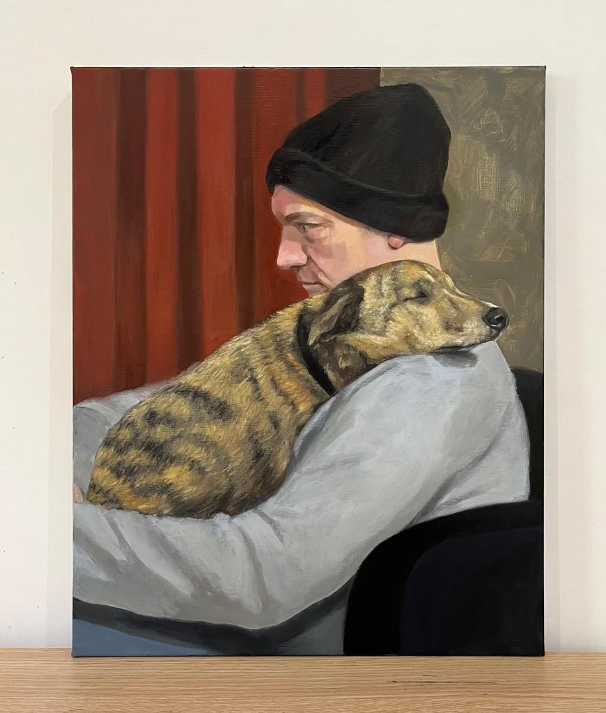 The East Sussex artist got her degree in fine art from the University of the West of England in Bristol. Her art isn’t limited to comfy interiors. She also paints vibrant city scenes, landscapes, abstract nudes, charming animal portraits, and, interestingly, views out of plan windows. I’ll save those for another day.