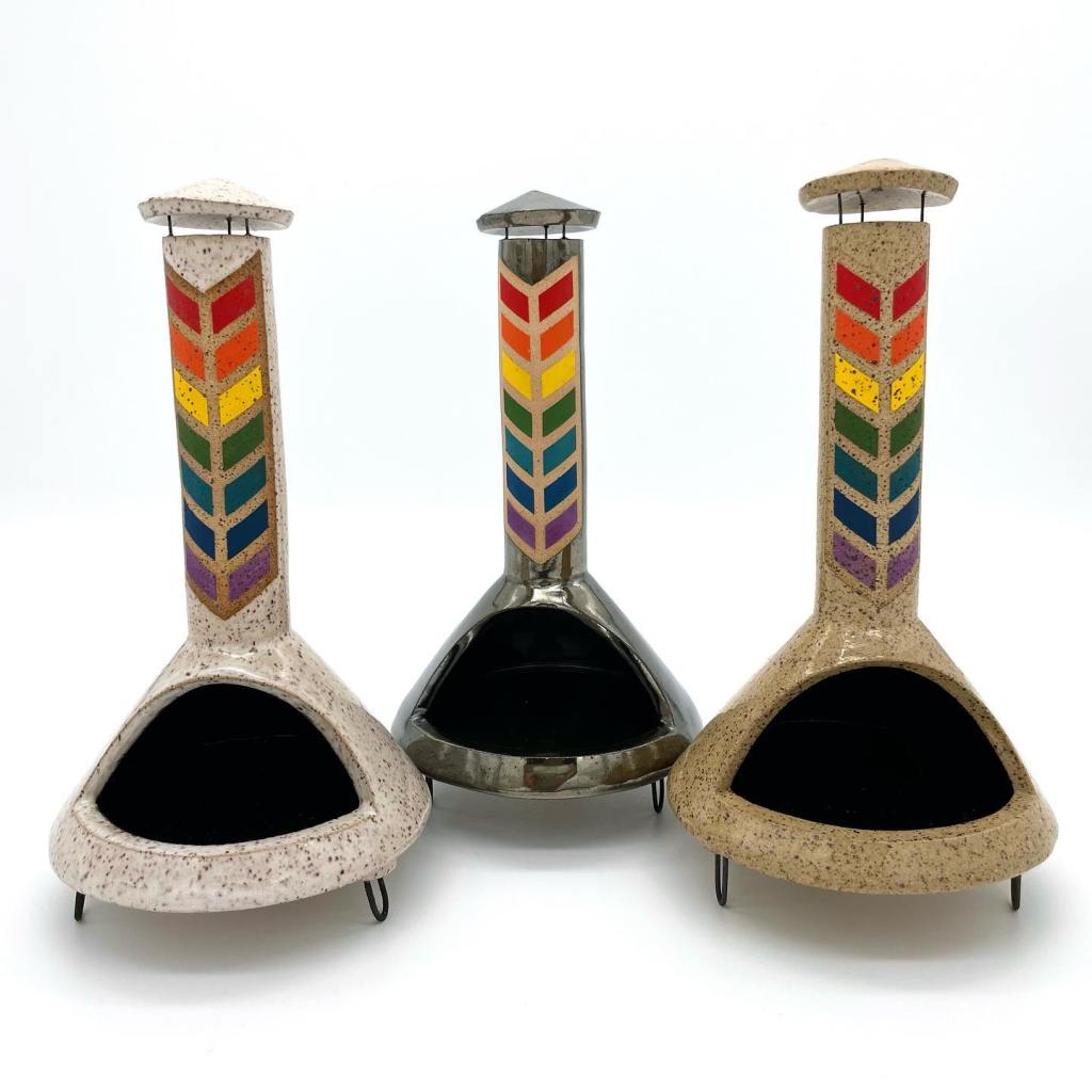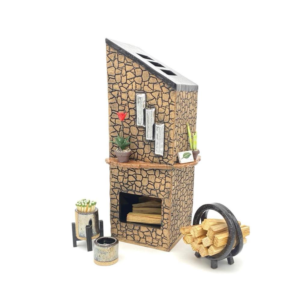 I first spotted one of Kate Schroeder’s ceramic mini malm stove incense burners in a client’s apartment, and I fell completely in love! Once I found the artist’s website and social media, I was hopelessly hooked. The artist discovered her love for ceramics in high school, but once she started in art college, she also discovered how much she loved sculpture. After pursuing a double-major degree in both art forms, it seemed logical for her to put her two loves together with her fondness for architecture and nostalgia.