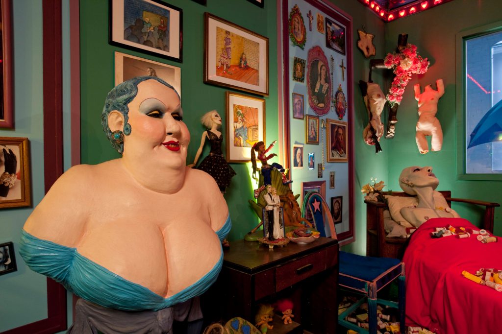 Lankton’s art dolls, which range in size from miniature to life-sized, explore ideas of gender, sexuality, and beauty. Like my friend’s art, Lankton’s works featured celebrities, drag queens, circus acrobats, and other “freaks.” Her talent for combining the glamorous with the grotesque make her dolls true works of caricature art.