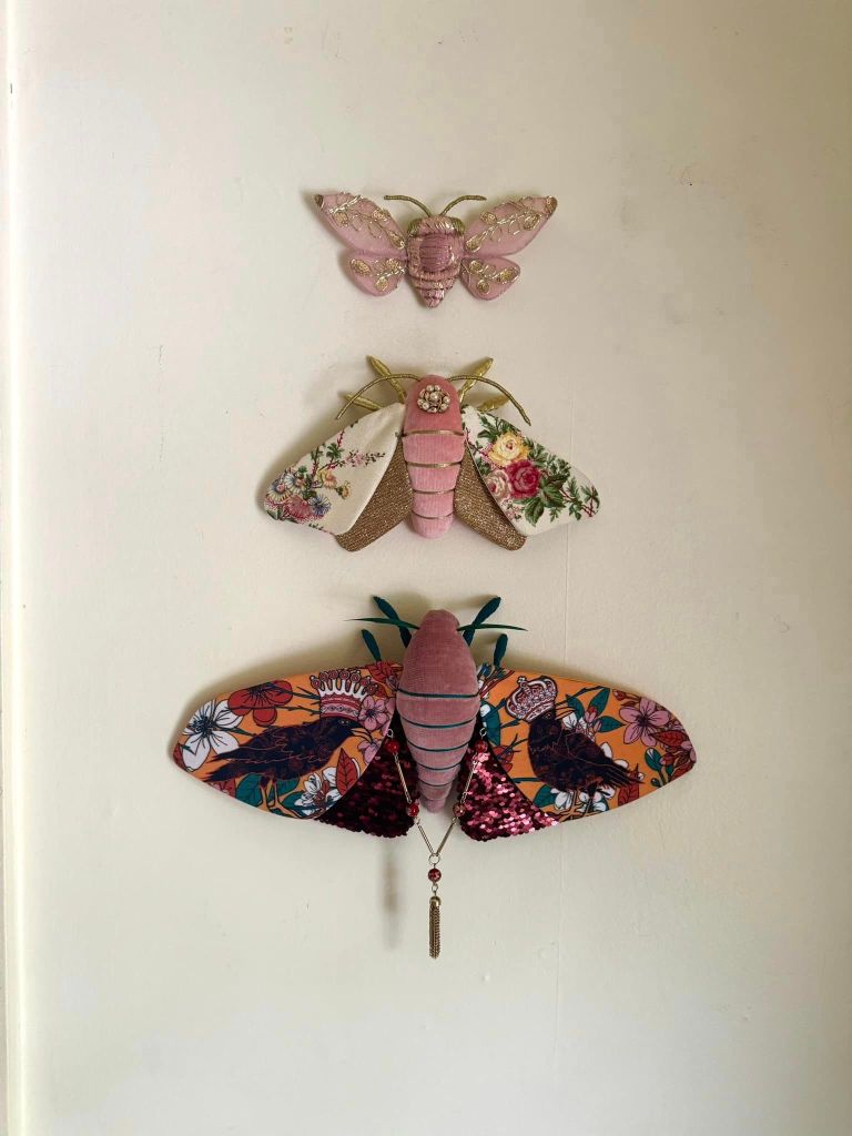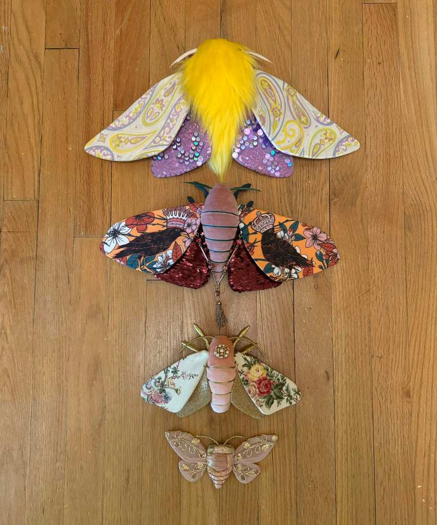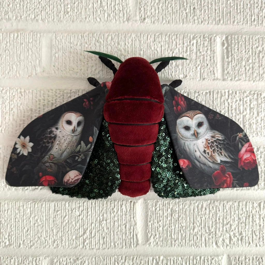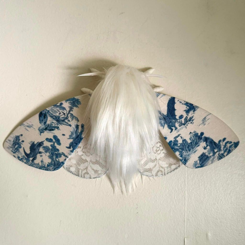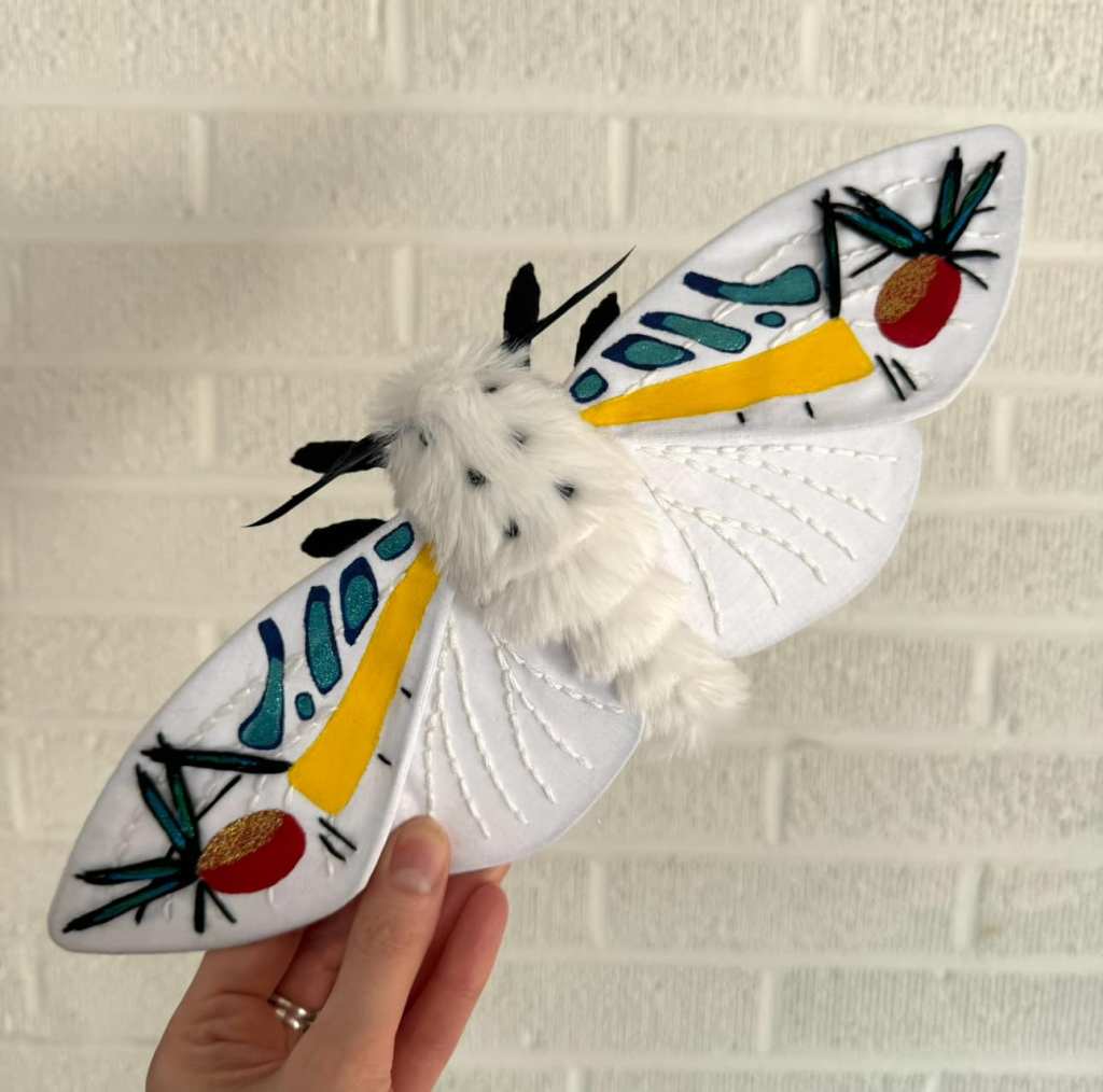 “Shortly after starting out on my own, I decided I would make a cicada art piece for my bug loving friend, Sarah May. Having been a seamstress for a decade at that point fiber was the medium I was most familiar with, so I figured why not give soft sculpture a try. My first attempt did not go well. In fact I went through a few patterns and prototypes before I finally created one that I was happy with. I loved the process so much I decided to keep it going with different insect species.”