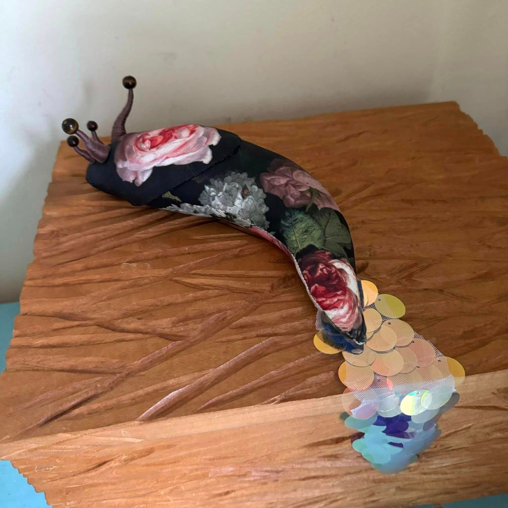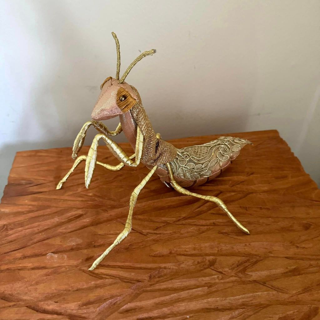 Burgess turned to art as a refuge when her dyslexia caused her excessive trouble processing letters and numbers, and it quickly became her passion. After honing her fabric-working skills making window treatments and bedding, she turned her attention to the creation of soft, luxurious sculptures. Burgess’s art is mostly focused on bugs, though she does also throw in the occasional crustacean, isopod, or bat for fun. But she hit upon her style purely by coincidence.